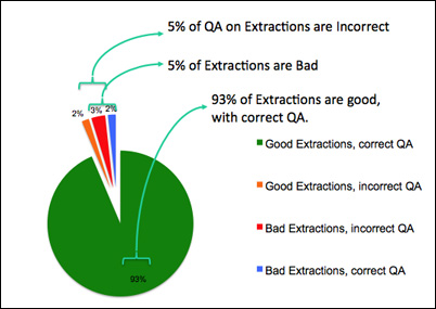 Extracted Spectra GradesThe extracted spectra provided as a browse product represent the result of automatic processing through one particular data reduction tool, MAKEE. In general, human operators of such reduction tools can do a better job of spectral extraction than an automated pipeline, and hence, we strongly recommend that archive users who wish to make serious scientific use of the data should download the raw images and reduce the data themselves, taking particular care that the reduction parameters do not compromise the science that they hope to glean from the data. Nevertheless, extractions by the pipeline can be quite good. In order to interpret the quality of the extractions, KOA also has an automated "quality assessment" (QA) grade. Again, the automated nature of this grading process is imperfect, so even the grade may not be correct in the archive. Grading is done order-by-order, and the large number of orders in the archive discourage manual grading of each order. The automatic QA grade is either "Pass", "Fail" or "Unknown." A "Pass" means that reduction artifacts, while they may be present, do not obscure the underlying astronomical data. A "Fail" means that no sign of the underlying data is visible in the extraction; it is dominated by reduction artifacts. "Unknown" means that a QA grade could not be determined. Grades are included in the EXQUAL FITS header keyword. Grades represent the quality of the extraction, not necessarily the quality of the original data. Figure 1: Automated grading of a subset of HIRES extractions shows that 93% of the extractions are good, and correctly graded. Another 2% are bad extractions, but also correctly graded. The remaining 5% are incorrectly graded by the automatic algorithm. Please see Guide to Interpreting the Extracted Spectra for more information on spectra quality. For a thorough description of the quality assessment procedures, see Quality Assessment of KOA HIRES Extracted Spectra (PDF). |